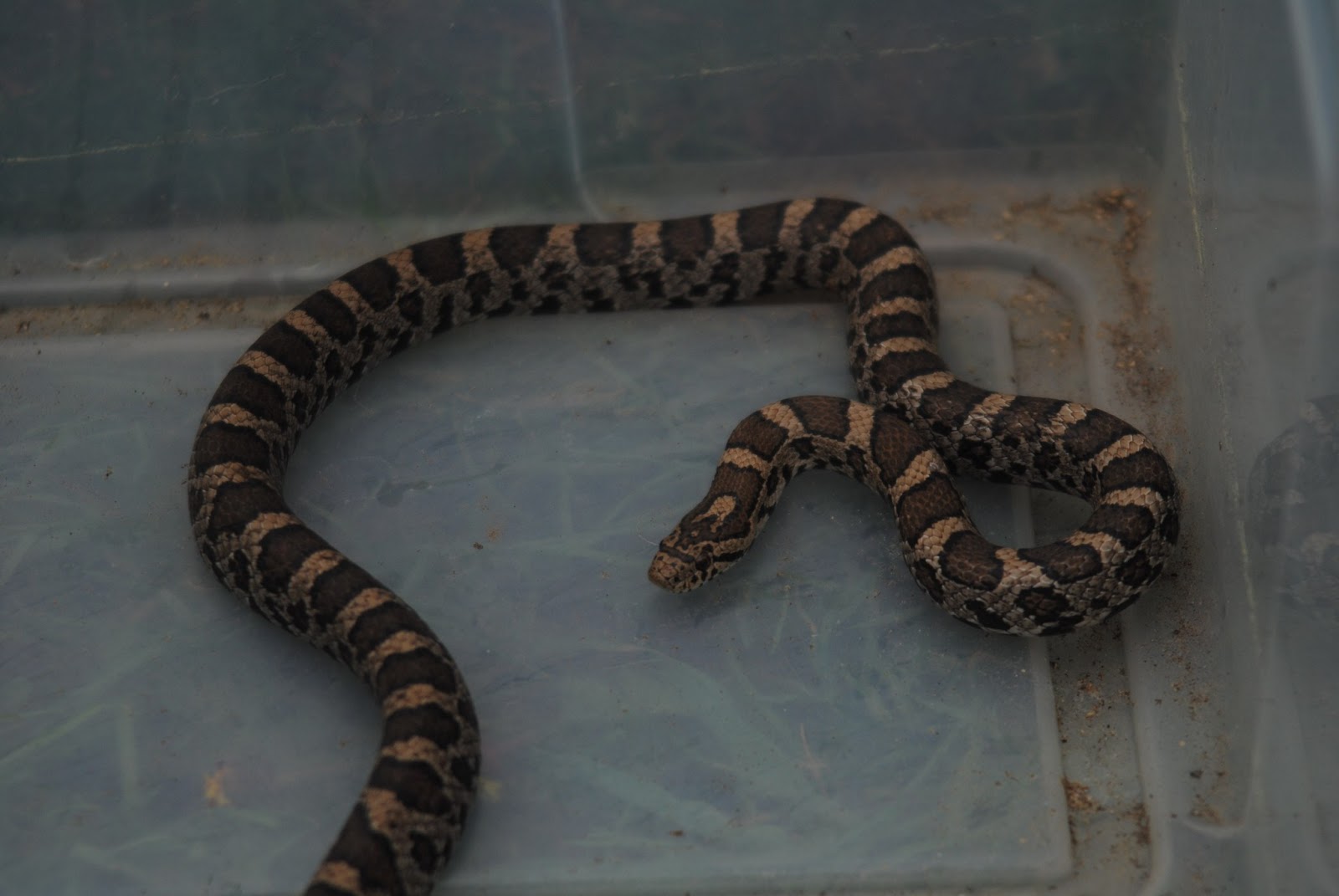One of our pairs showed no signs of nest making or courting so we swapped the female in hope that the male would take more interest this time around. Once caught, handling is kept to a minimum to reduce stress but we just had time to take a quick shot of the female who will be leaving us and returning to Toronto Zoo. She will most fondly be remembered for her ability to catch and impale wild snakes and beetles which always made the morning feed round more interesting.